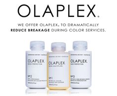 Olaplex works to rebuild broken bonds from within repairing, protecting, and strengthening hair. Turn your dry, brittle and damaged hair into silky, smooth and vibrant hair with an in salon treatment or add it to your color formula to protect against future color damage.